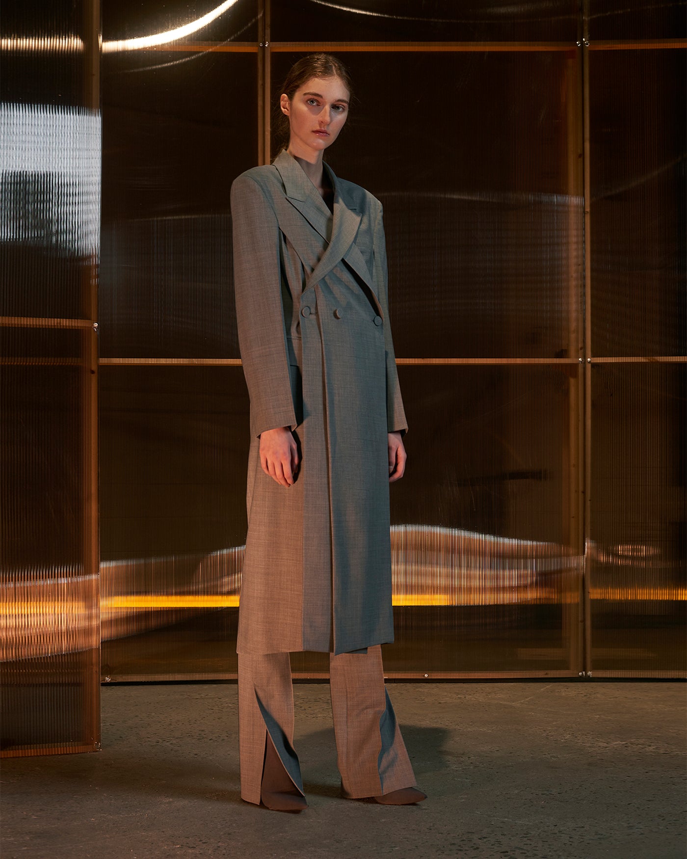 - Overlapped lapel collar tailored jacket / Light grey