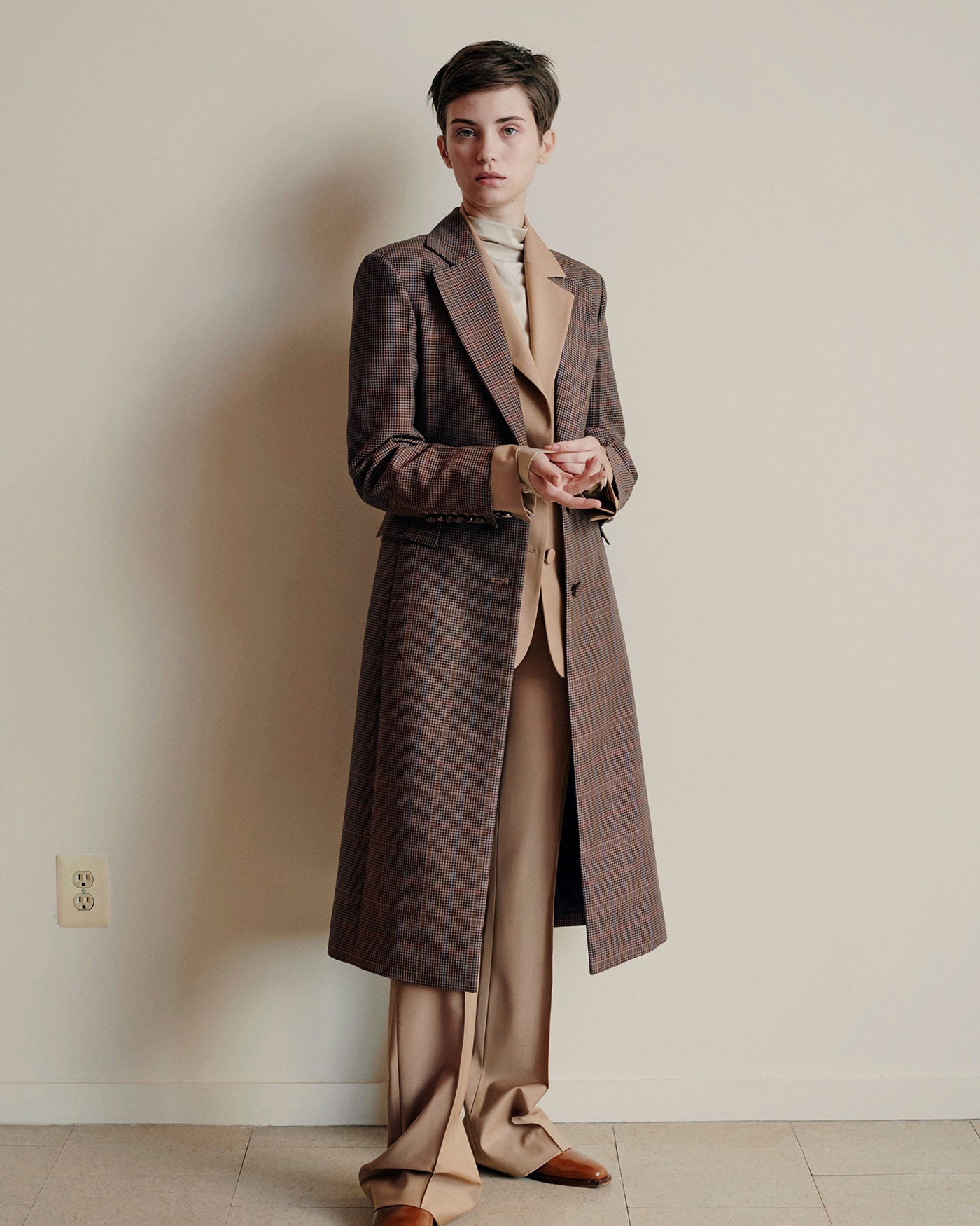 - Glen-plaids wide-shoulder tailored coat