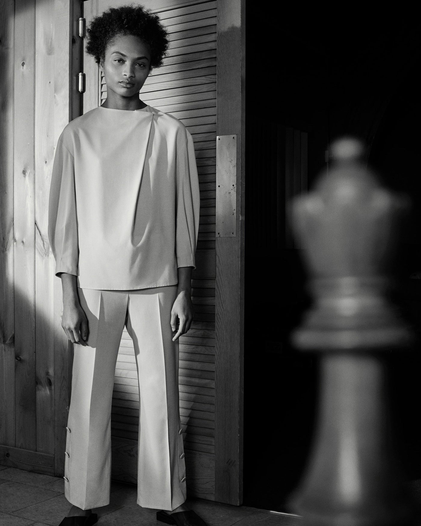 - 3 buttons up sleeves ruched turtleneck / Beige