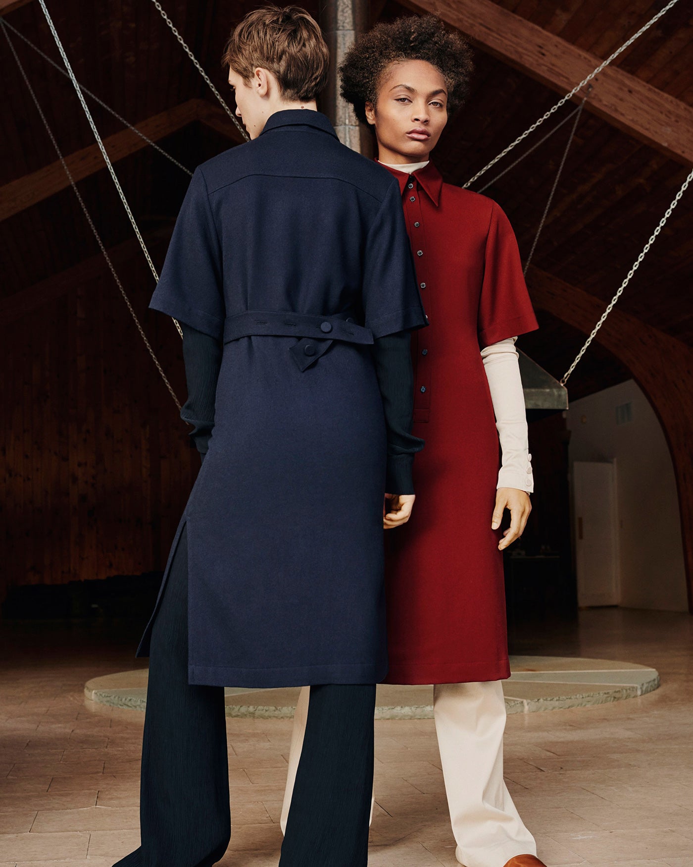 - Belted-waist short sleeve shirt dress / Navy & Burgundy
