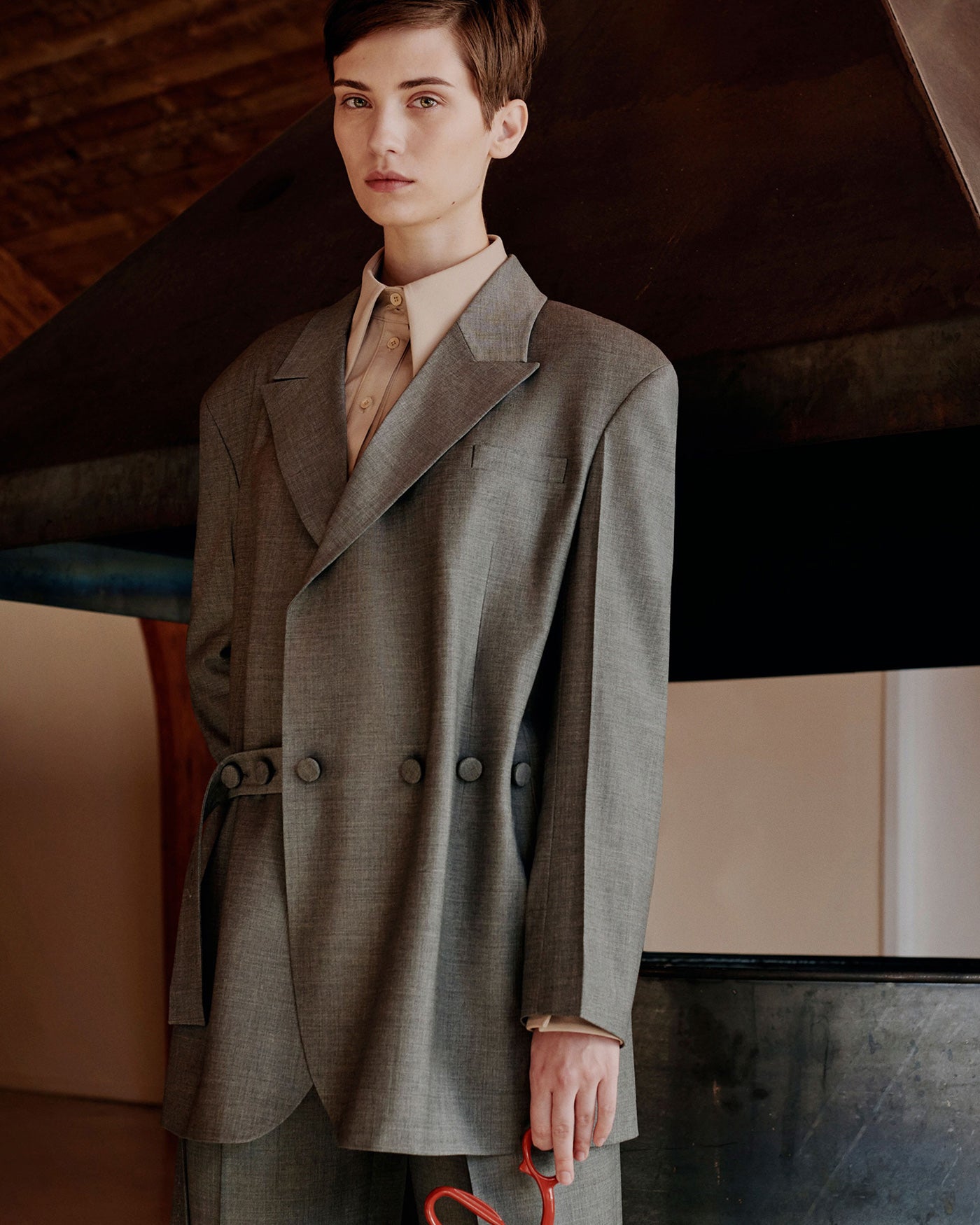 - 3 buttons up sleeves ruched turtleneck / Beige