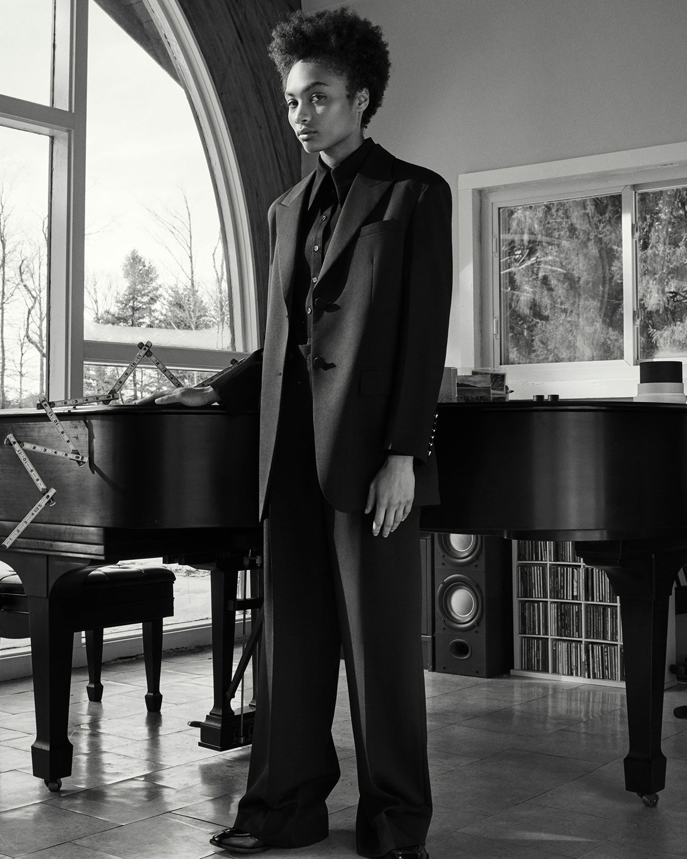 - Wide-dropped shoulder tailored blazer / Navy